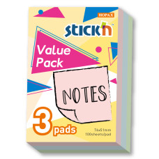 Блок самоклеящийся бумажный Stick`n 27089 76x51мм 100лист. 70г/м2 пастель ассорти 3цв.в упак. (упак.:3шт)