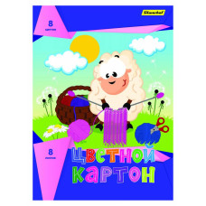 Картон цветной Silwerhof 918104-14/1 одност. 8л. 8цв. A4 Овечка 230г/м2 1диз. обл.мел.картон папка