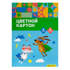 Картон цветной Silwerhof немелованная 8л. A4 Веселые друзья 230г/м2 1диз. ПЭТ