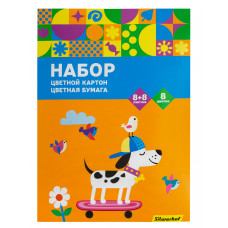 Набор картона/бумаги Silwerhof 16л. 8цв. A4 Цветландия 230г/м2 1диз. обл.мел.картон папка