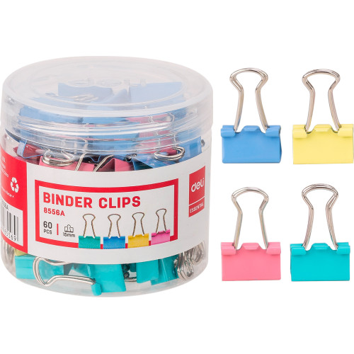 • Зажимы Deli E8556A металл 15мм ассорти (упак.:60шт) пластиковая коробка