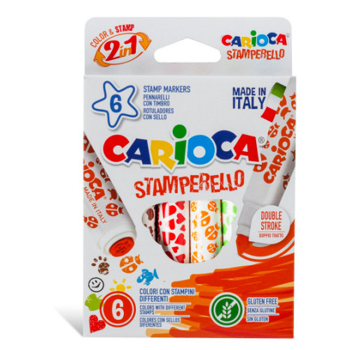 • Фломастеры Carioca STAMPERELLO 42279 6цв. двусторонние со штампами коробка с европодвесом
