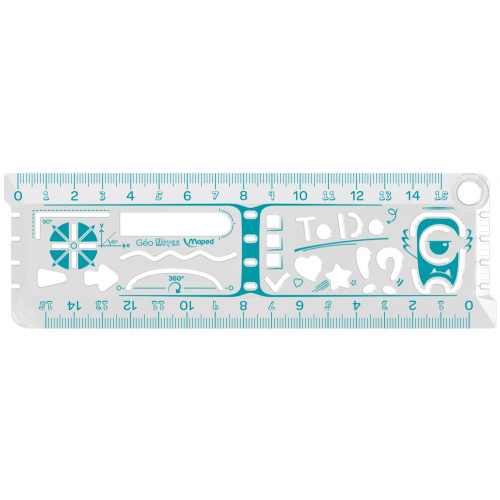 • Линейка Maped Geonotes 250210 дл.15см с трафаретом пластиковый пакет с европодв.