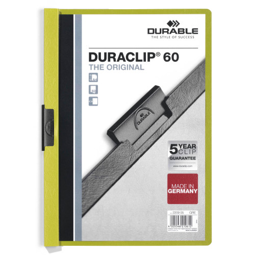 Папка с клипом Durable Duraclip 2209-05 прозрач. верх.лист A4 1-60лист. зеленый
