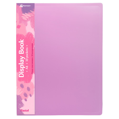• Папка с 10 прозр.вклад. Бюрократ Pastel PAST10PINK A4 пластик 0.5мм торц.карм с бум. встав розовый