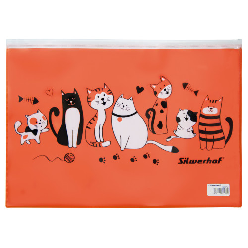 Папка на молнии ZIP Silwerhof Cats 255189 A4 пластик оранжевый цвет молнии белый