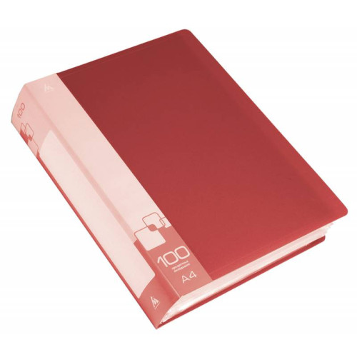 Папка с 100 прозр.вклад. Бюрократ -BPV100RED A4 пластик 0.8мм торц.карм с бум. встав красный