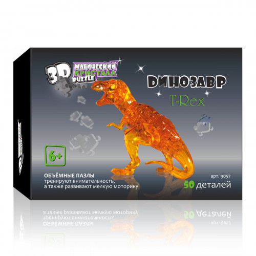 Развивающие 3D головоломки или 3D пазлы - пазлы нового поколения, разместив детали в нужном порядке, вы получите трехмерную фигурку 3D Crystal Puzzle Динозавр 9057, которая сможет стать яркой игрушкой для вашего ребенка или роскошным украшением любой комнаты. Объемные 3D crystal puzzle подойдут как детям, так и взрослым. Вы получите не только массу удовольствия, собирая кристаллические фигуры, но и проведете время с пользой. По мнению психологов, собирание пазлов способствует развитию образного и логического мышления, произвольного внимания, восприятия, в частности, различению отдельных элементов по цвету, форме, размеру и так далее; учит правильно воспринимать связь между частью и целым; развивает мелкую моторику. ВНИМАНИЕ: данный товар является головоломкой, а не конструктором! Поэтому наличие подробной инструкции в наборе не предполагается.