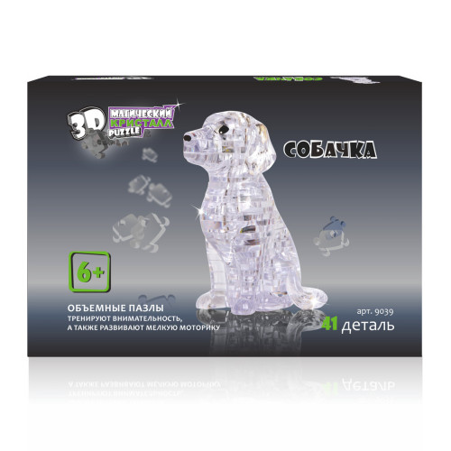 Развивающие 3D головоломки или 3D пазлы - пазлы нового поколения, разместив детали в нужном порядке, вы получите трехмерную фигурку 3D Crystal Puzzle Собачка L 9039, которая сможет стать яркой игрушкой для вашего ребенка или роскошным украшением любой комнаты. Объемные 3D crystal puzzle подойдут как детям, так и взрослым. Вы получите не только массу удовольствия, собирая кристаллические фигуры, но и проведете время с пользой. По мнению психологов, собирание пазлов способствует развитию образного и логического мышления, произвольного внимания, восприятия, в частности, различению отдельных элементов по цвету, форме, размеру и так далее; учит правильно воспринимать связь между частью и целым; развивает мелкую моторику. ВНИМАНИЕ: данный товар является головоломкой, а не конструктором! Поэтому наличие подробной инструкции в наборе не предполагается.