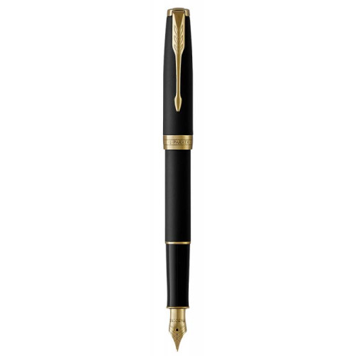 Ручка перьев. Parker Sonnet Core F528 (1931516) Matte Black GT F сталь нержавеющая в компл.:в корпус вставлен конвертор/картридж 2шт с черными чернилами подар.кор.конвертор/картриджи