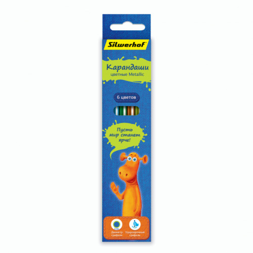 Карандаши цветные Silwerhof 134204-06 Джинсовая коллекция круглые черное дерево d=3мм 6цв. металлик коробка/европод.
