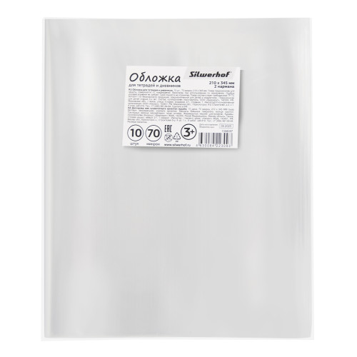 Обложка Silwerhof 382162 для тетради/дневника (набор 10шт) ПП 70мкм гладкая прозр. 210x345мм
